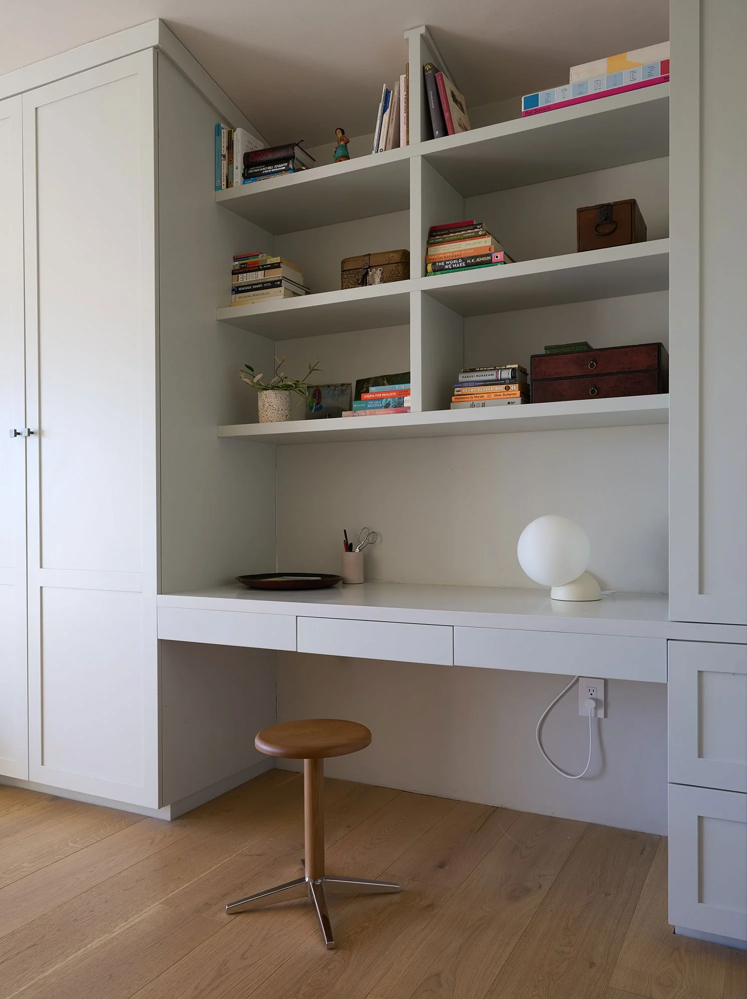 Most importantly, it creates a new entrance, bridges the main house to a converted garage turned creative hub (acting as office, gym and rehearsal space), and dramatically expands the footprint towards the north, stretching the living room, reimagining the kitchen, carving out space for an additional bedroom and a generous ground-floor bath.