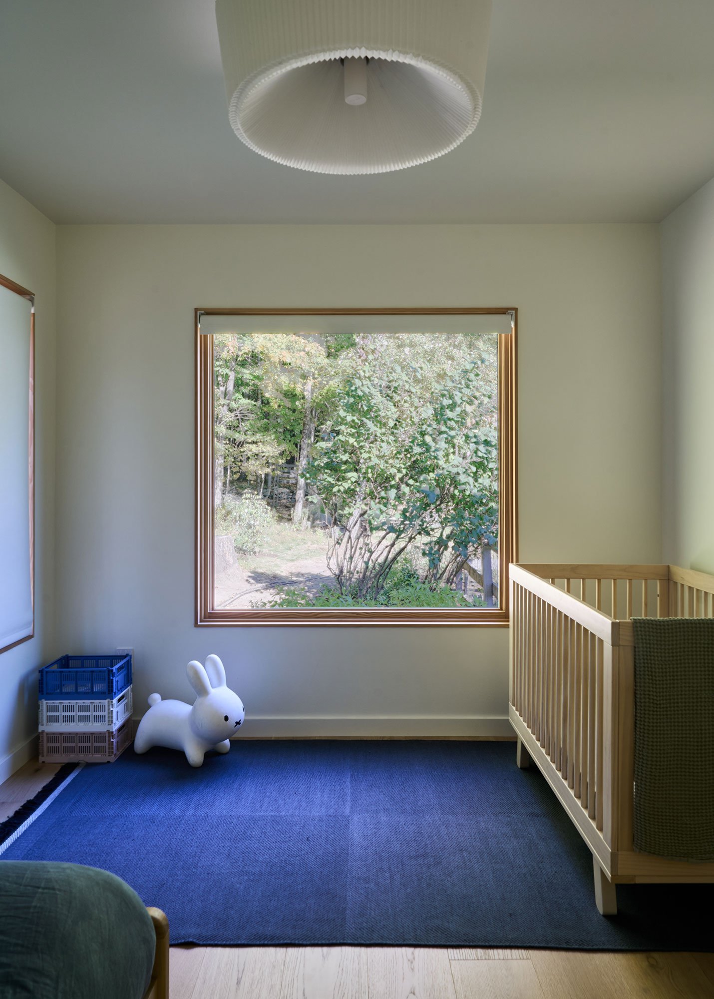 Every window is choreographed and very view thought through.. Large-scale sliding doors in the living room and primary suite frame the Shawangunks, transforming daily life into a constant dialogue with the land.